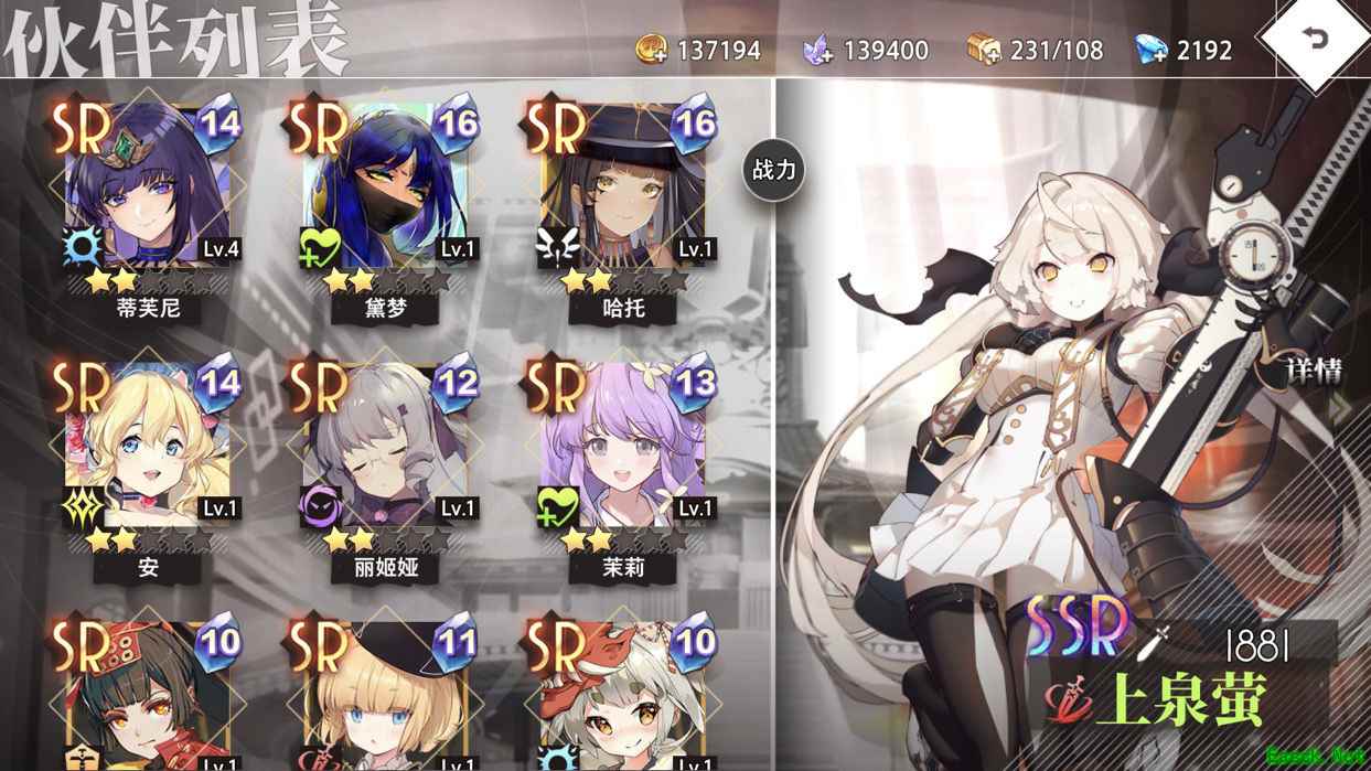 阵容2: 小夜加潘,配玛丽和琪琪做BUFF,然后凤凰和上泉,最后上个夏目,没夏目上其他的,这阵容11图之前没问题。