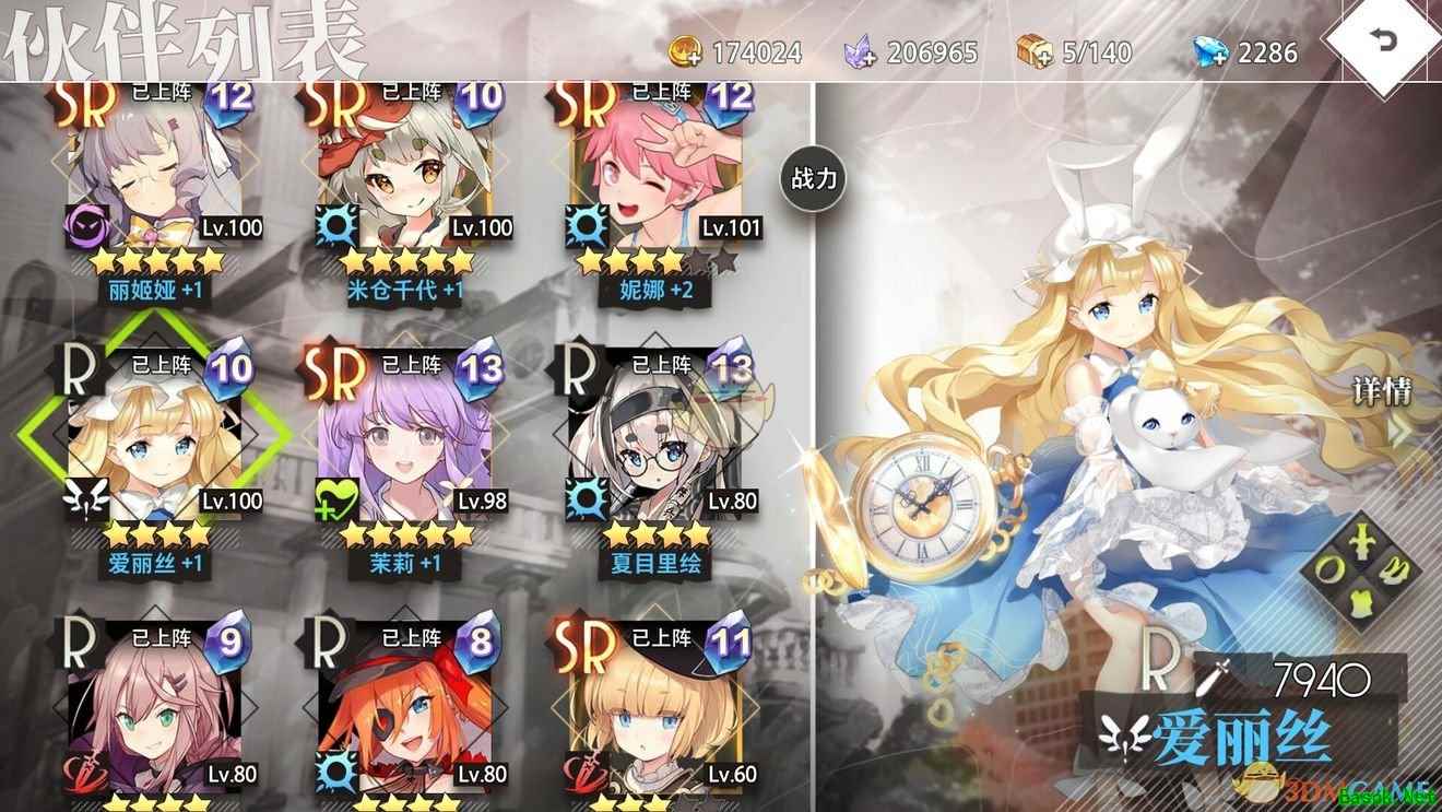 3、现主线已通,噩梦被压2w多战力,卡在12章中间,竞技场顺序,玛丽千代妮娜夏目茉莉~~~后面就用不到了,基本除了打无敌流要手动,其他挂自动基本不会输。 4、开服玩家,基本大部分钻石用于抽奖,还非得一匹,见不到ssr,只能用sr和r了,所以整体星级偏高,除了琪琪工具人不需要升星,妮娜短时间内没办法升星,其他都是满星,所以五星茉莉丽丽千代还是有一点点获取难度。