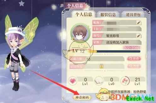 3、点击【神奇密码】选项,这就是大家在找的兑换码领取位置,点击后就进入了可以输入兑换码页面,将自己得到的礼包兑换码输入就可以领取相应的礼包道具了!