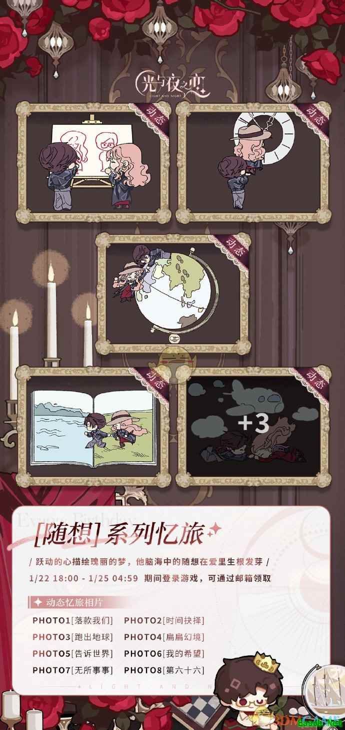 光与夜之恋在即将开启的男主陆沉生日活动期间,带来了大量的福利活动,并且还上新陆沉随想系列全新亿旅相片,只需要登录游戏即可获得系列相片,不清楚相片怎么获取的玩家可以参考小编整理的《光与夜之恋》陆沉随想系列忆旅相片获得方法,一起往下看看吧。