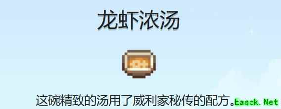 龙虾浓汤效果 回复效果:+101生命值、+225能量值。 增益效果:钓鱼技能提升3级,持续24小时。 |