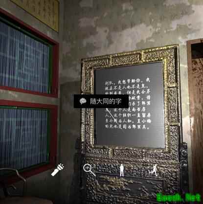 《孙美琪疑案-夏小梅》随大同的字线索获得位置随大同的字: 这个线索需要参考每间房窗户上红纸里的图案提示,按房间顺序排列。 然后关联一个四级线索【谜题】,之后打开手电筒,来到右侧的第一个房间,点击墙上的钉子,将四幅画按照“荷花梅花菊花牡丹”的顺序重新挂上去。后面屏风上会出现字。