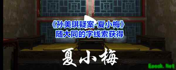 夏小梅疑案是孙美琪疑案的第十一集,《孙美琪疑案-夏小梅》随大同的字线索在哪里呢?下面是小编珞珞给大家带来的《孙美琪疑案-夏小梅》随大同的字线索获得位置介绍,感兴趣的小伙伴一起看看吧! >>>>小编推荐:《孙美琪疑案》系列游戏下载攻略汇总 >>>>小编推荐:《孙美琪疑案-夏小梅》攻略线索大全