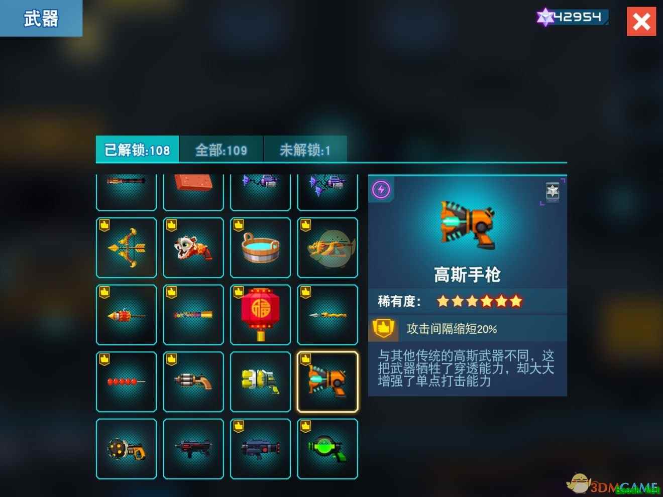 高斯手枪 能量武器 解锁方式:渣渣渣挑战 优点:击中产生硬直,并持续伤害6次,耗弹少,射速快,射程远,支持活性火力,可以打断怪物某些技能,例如埃斯特机械师,黑化树精的等。解锁简单。 缺点:首发弹幕支持各种增益被动,例如生长药剂,但是持续伤害不吃增加攻击被动,对建筑物没有持续伤害,普通前期可以,之后伤害太低,如果攻速可以的话,某些boss可以强制持续硬直。满熟练度还是不错,关键是伤害太低,不能群攻。 持续伤害不受任何加成,总结就是一个前期的武器,如果此枪持续伤害可受不稳定化合物,巨蟹座加成还是不错,但现在是更新手枪中最费的