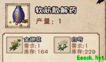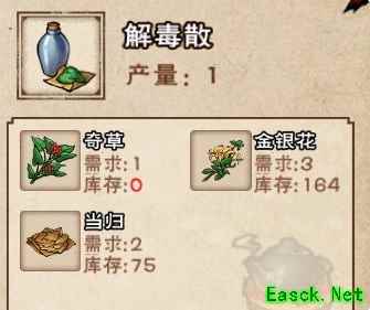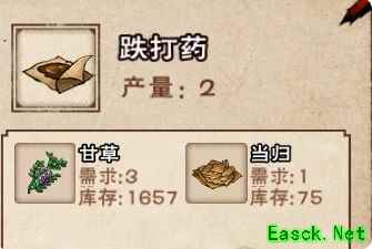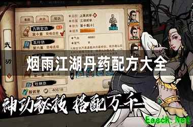《烟雨江湖》是一款爆火好玩的文字武侠游戏,玩家将操控侠客学习各种武学招式与秘籍,认真修炼强化本身的等级战力,功能各异的丹药也有着不同的属性技能,能够轻松强化本身的天赋技能,本次小编带来的是烟雨江湖丹药配方大全,给大家带来帮助! 丹药配方大全以药功效一览一、甘草汤 ①配方:甘草×5 ②效果:支线道具 二、蛇胆解毒丹 ①配方:甘草×5、金银花×2、蛇胆 ②效果:支线道具 三、解毒散 ①配方:奇草、金银花×3、当归×2 ②效果:支线道具(药王谷) 四、醒梦汤 ②效果:甘草×18、当归×6、虎骨×5 ②效果:任务道具(龙泉疯老汉、衡山主线) 五、软筋散解药 ①配方:白芍、金银花 ②效果:任务道具(南阳渡毒龙帮主线) 六、避瘴丹 ①配方:冥罗花、当归×3 ②效果:消除泰安巨野泽的瘴气 七、解毒丹 ①配方:甘草×5、金银花×2 ②效果:消除毒和天—教的瘴气 八、跌打药 ①配方:甘草×3、当归 ②效果:恢复自身200内伤 九、真龙丹 ①配方:甘草×15、鹿茸×3 ②效果:增加5点根骨资质 十、大力丸 ①配方:甘草×14、枸杞×10 ②效果:增加5点臂力资质(300颗) 十一、健气丹 ①配方:甘草×12、杜仲×2、地黄x4 ②效果:下次战斗中增加10%的防御 十二、愈血丹 ①配方:甘草×15、白芍×6、人参 ②效果:下次战斗中增加100点回血 十三、凝碧丹 ①配方:甘草×16、黄精×5、灵芝 ②效果:下次战斗中增加1点聚气速度 十四、龙虎丹 ①配方:甘草×200、虎骨×80、鹿茸×50 ②效果:永久性增加1点臂力 十五、熊魄丹 ①配方:甘草×200、熊胆×100、灵芝×45 ②效果:永久性增加1点根骨 十六、真武丹 ①配方:甘草×18、五灵花、虎骨×8 ②效果:随机增加某项属性10点资质 十七、火阳丹 ①配方:甘草×150,人参×30,灵芝×30,红景天 ②效果:明月峰冷月宫后山神水池打坐修炼可用 十八、紫薇神丹 ①配方:甘草×46,人参×10,阴朱×8,凌霄花×8 ②效果:可扩充真气容量,提升内功修为 十九、太极神丹 ①配方:蛇胆×10,虎骨×10,玄参×20,阴朱×20 ②效果:服用后内息身法均提升2点 二十、七宝玄丹 ①配方:甘草×21,鹿茸×7,玄参×7,凌霄花×7 ②效果:使用后提升韧性、气血、闪避、速度 二十—、血丹 ①配方:甘草×10、血兰、钟乳 ②效果:提高血池浸泡所造成效果 二十二、《止血散》 ①配方:甘草×6、当归×3 ②效果:立即回复我们500点血量 二十三、《顺脉丹》 ①配方:甘草×30、白芍×14 ②效果:攻击力、防御力和生命值都有一定程度的提升 二十四、《灵虚丹》 ①配方:甘草×16、杜仲×12 ②效果:大幅度提高人物的属性值,如攻击力、防御力、生命值等等 二十五、《明慧丹》 ①配方:甘草×16、茯苓×12 ②效果:可以永久增加我们5点内息资质,急需增加内息的玩家可以使用这个丹药 太乙丹药答题贝母:贝草 白芍:凉、苦、微寒 道家经典:道藏 灵芝:止咳平喘 燕窝:唾液 鳖甲:咸、微寒 雪莲:温、甘苦 杜仲:中原 牛黄:结石 蛇胆:凉 龙葵:利尿 雄黄:辛、温 百草之王:人参 木瓜:丰胸 中药:修治 常见药草:甘草 金银花:甘寒 金银花:白色、黄色 何首乌:能乌人发 虎骨:祛风通络 鹿茸:生精补髓 牛膝:肝肾 冬虫夏草:菌类 当归:甘、辛 附子:大毒 蜈蚣:辛、温 味甘、淡、性平:茯苓 熊胆:苦、寒 地黄:根块 决明子:治鼻血不止 丹药功能介绍提升角色资质 强化战斗防御力 快速恢复能力 临时增益 战斗辅助 更多特殊功能 |