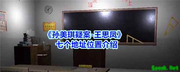 《孙美琪疑案-王思凤》七个地址位置介绍游戏中的起个地址分别是:丰台区桥梁厂、崇文区、武清县、宣武区、通化市二道江、湘潭市雨湖区、怀化市沅陵县 以上就是小编整理带来的《孙美琪疑案-王思凤》七个地址位置介绍,大家找到了吗?更多精彩内容,请点击关注手游网,小编将持续为您更新! 游戏简介“每个学校都有一个你从来不敢进去的神秘的地方,而这里往往沉淀了建校以来的一切谜团。”——-刘青春 孙美琪案发后,刘青春第一时间来到了长庄镇小学,刚好学校放假,刘青春请示了校长后进入了教学楼。 午后刘青春坐在王思凤的课桌上思索着案情,迷迷糊糊的就睡着了。 当他醒来时已经是深夜,学校教学楼的门已经上锁,刘青春也不知道自己是不是真睡着了,还是什么别的原因就突然这个时间了。 校长杜***口供:“刘队,我没想到我们学校孩子的家里发生这么大的案子,我们校方一定积极配合调查。王思凤小朋友在五年级二班,在二号教学楼,今天正好是星期天,您可以去看看,但是请不要去二楼,那里一直是放杂物的地方,校工一般都会给锁起来的。” 反正也出不去了,于是刘青春决定夜探教学楼,看看有什么对案情有帮助的线索。 |