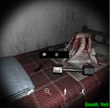 4、循环屋4卧室的床上有哑铃,鬼头刀,和一个被沾着血毛巾盖着的东西。(如下图)