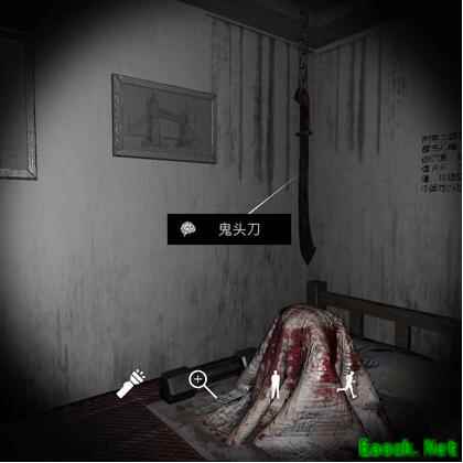 4、循环屋4卧室的床上有哑铃,鬼头刀,和一个被沾着血毛巾盖着的东西。(如下图)