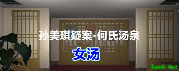 《孙美琪疑案-何氏汤泉》五级线索——女汤女汤:从大堂位置往前面走,碰到墙左拐,没几步路就可以看到墙上挂着的牌子。