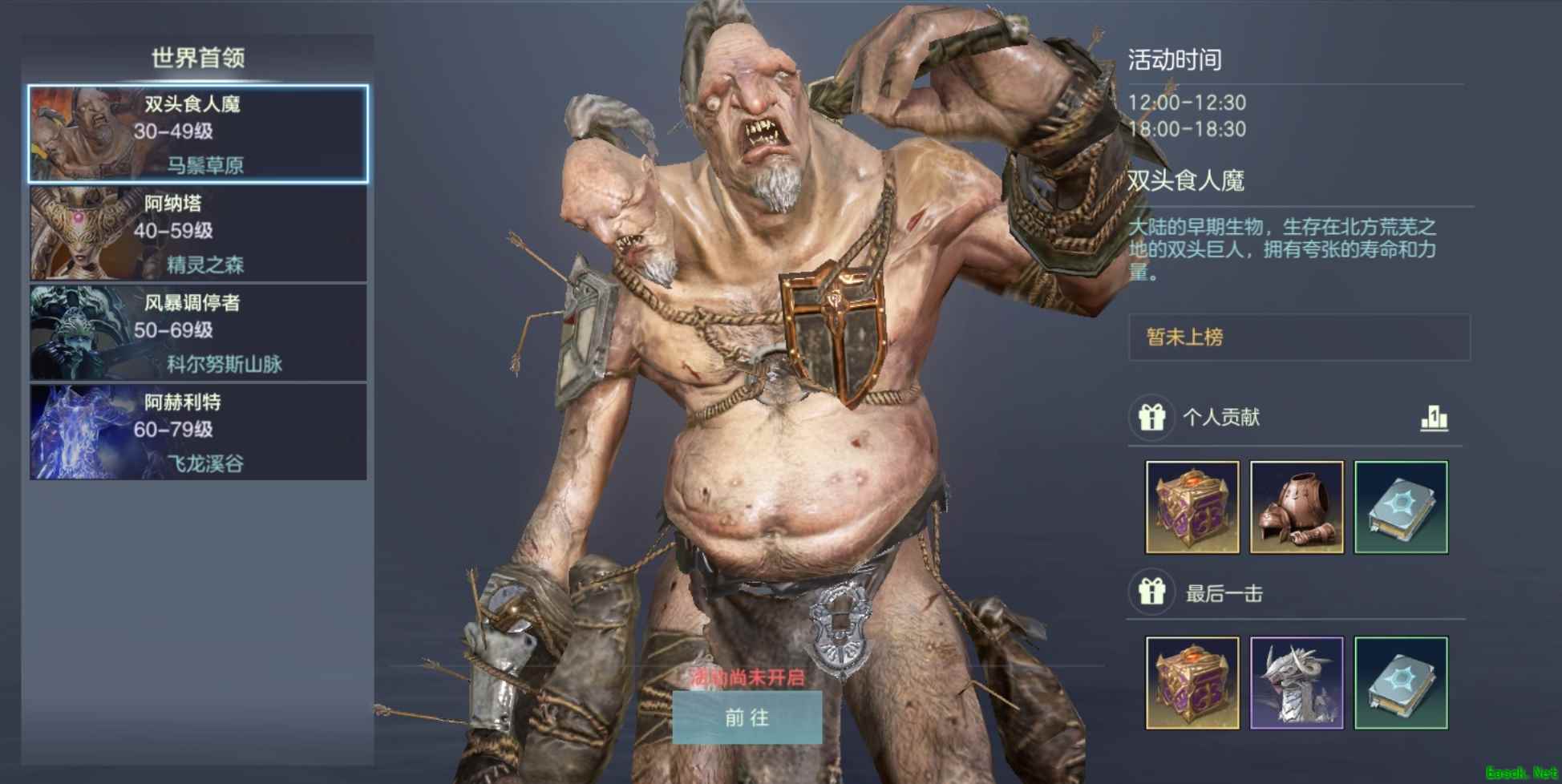 上古大块头 双头食人魔 随着玩家成长,遇到的精英boss实力也会有所差异。生存在马鬃草原的“双头食人魔”就是诸位勇士遇到的首个挑战。体型巨大,皮肤比犀牛还要坚硬的他们是大陆上最早期生物之一,长期生活在北方荒芜之地,艰苦的生存条件造就了他们夸张的寿命和力量。虽然拥有两个脑袋,但是他们惯用蛮力,灵活打击,持续伤害才是克敌良策。