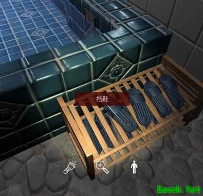 《孙美琪疑案-何氏汤泉》五级线索——拖鞋拖鞋:这个很好找,进入浴池,在浴池旁边的鞋架上就是了。