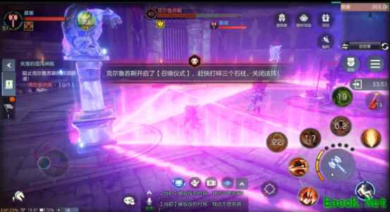 1、第一个BOSS——克尔鲁苏斯 一个法师系的BOSS,一共拥有四个技能:大范围十字攻击的且攻击力贼高的亡灵冲击;从地底冒出骨刺陷阱的骸骨尖刺;全屏无差别攻击的献祭;还有一个召唤宝宝帮忙打架的技能召唤仪式。 克尔鲁苏斯主要释放的技能为亡灵冲击、骸骨尖刺和献祭,除了献祭无法直接躲避只能硬抗以外,剩下的两个技能用位移技能躲避即可,没有什么难度。 这里主要说下召唤仪式这个技能,这个技能也是克尔鲁苏斯比较烦人的一个技能。当克尔鲁苏斯血量下降到50%左右,他会开始释放召唤仪式技能,当前场景会出现紫色的六星芒阵,然后就会召唤一堆骸骨士兵,这时候你是不是想说干掉就行了?是需要干掉,但是这个时候的首要工作应该是清除掉阵法的三根雕像石柱。如果不这么做,骸骨们会源源不断的被召唤,这样副本很有可能无法完成。 所以一旦克尔鲁苏斯开启召唤仪式技能,我们的任务是,先打掉三根石柱,然后再消灭召唤物,召唤物的多少取决于石柱被打碎的时间。最后把召唤物和克尔鲁苏斯聚到一起,消灭之即可。