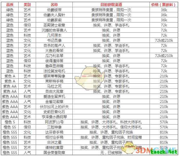 最强蜗牛落魄的贵族攻略 1、蓝贵价格如果为210k,是直接卖两个; 2、瓜乃利名琴一共鸣组合:献祭灵魂时,速度+3.6%; 3、书记员像一共鸣组合:每获得3蓝贵+32攻击,满效果+640攻击; 4、史前巨兽化石一共鸣组合:研究巨龙DNA时,速度+4.8%; 5、亨泽曼钢琴效果(满星):黑蝌蚪产量和蝌蚪池容量+18%; 6、阴阳鱼合成产出紫色对应专家手札奖池,橙色对应大师手札奖池,故不列入获取渠道。