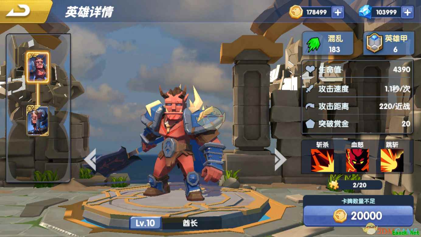 阵容搭配推荐: 酋长+鼬鼠战士/怨灵 大致思路:酋长升阶+伤害法术+强力输出 利用溅射和群攻等技能来短时间降低对方血线,让酋长启动斩杀,简单来说如何让其整体血线下降可以让酋长变得更加强势。。 但酋长的优势也是短板,因为会主动跳向敌方生命值百分比最少的单位,有时候可以刻意的位置放置,来可以主动吸引敌方酋长。而圣骑士,魔王,甚至火女有效的护盾都可以克制酋长的爆发斩杀。 酋长(混乱攻击—英雄甲)