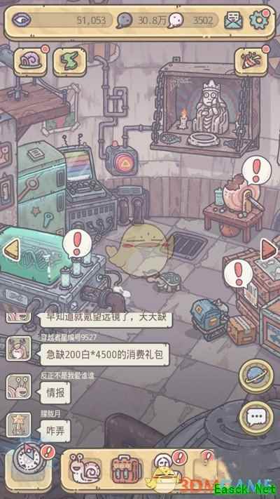 《最强蜗牛》乌龟打法攻略在最强蜗牛手游中,玩家会发现卧室内出现很多小动物,但乌龟与众不同,它不会像其他小动物那样离开,而是赖在了玩家的卧室里。 这时候玩家就需要檀香了,玩家们需要收集三根檀香了,然后给佛像上香,注意的是一次性上三根檀香,如果页面没有出现佛像的话我们需要点击旁边的红色按钮,佛像就会转过来了,这个时候我们就需要点乌龟,佛像就会攻击乌龟,多重复几次这样的操作就可以了。