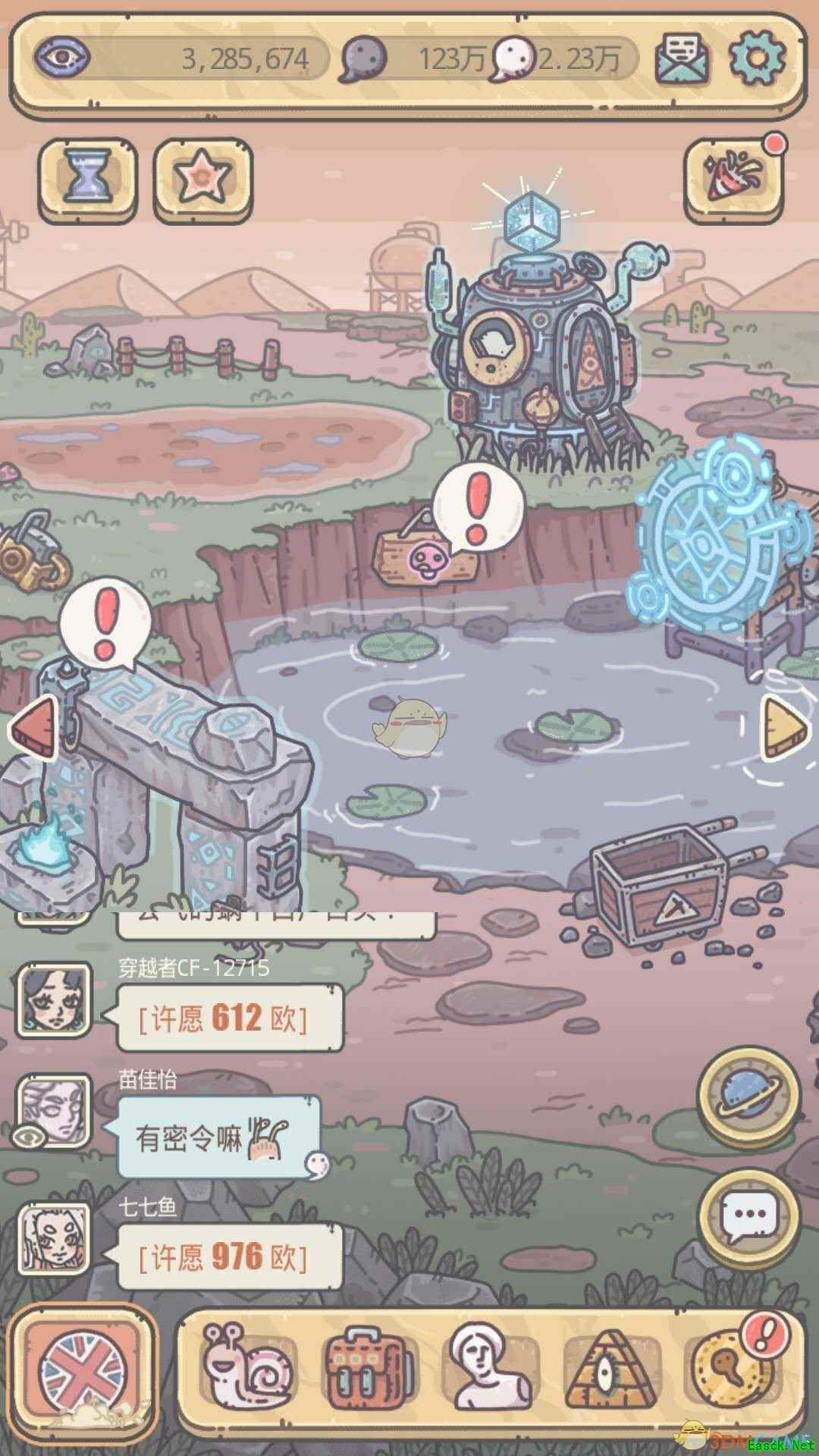 这一部分从上到下依次是蘑菇园、时光机,木材厂蝌蚪池、俱乐部签到,献祭台、石材厂 注意贵重品插槽尽量用属性加成的,特别是有白蝌蚪加成的,每次抽奖和许愿记得看一眼。 俱乐部签到的部分推荐购买器官,其次各研究手册,给伙伴喂食,五维达到一定数值即可升级。 献祭的部分就不说了,具体看之后的活动篇---献祭周,友情提示,石中剑拔不拔看自己,辣眼睛还是献祭周多拿点奖励二选一。