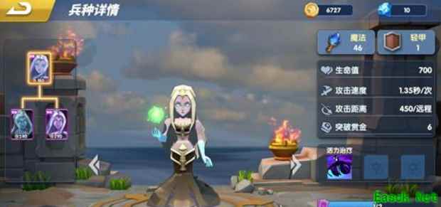 《荣誉指挥官》兵种怨灵测评怨灵 兵种进阶:活力怨灵、致命怨灵 魔法:46 轻甲:1 基础属性 生命值:700 攻击速度:1.35秒/次 攻击距离:450/远程 突破赏金:6 克制关系 克制:鬼影幽冥、巫妖、火战士 被克制:平头哥、兽人、精灵射手