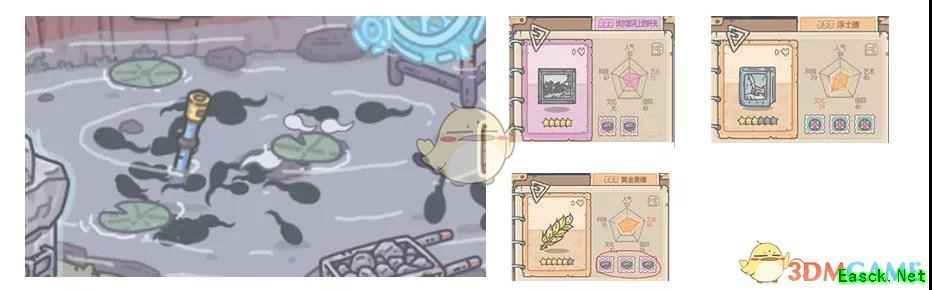 三、蝌蚪池产出,每天产出上限300白蝌蚪 需要通过贵重品增加白蝌蚪的产出率(如:SSS浮士德、AAA伏尔加河上的纤夫等等)或者贵重品镶嵌技能增加白蝌蚪产出率(如:SSS黄金麦穗等等)