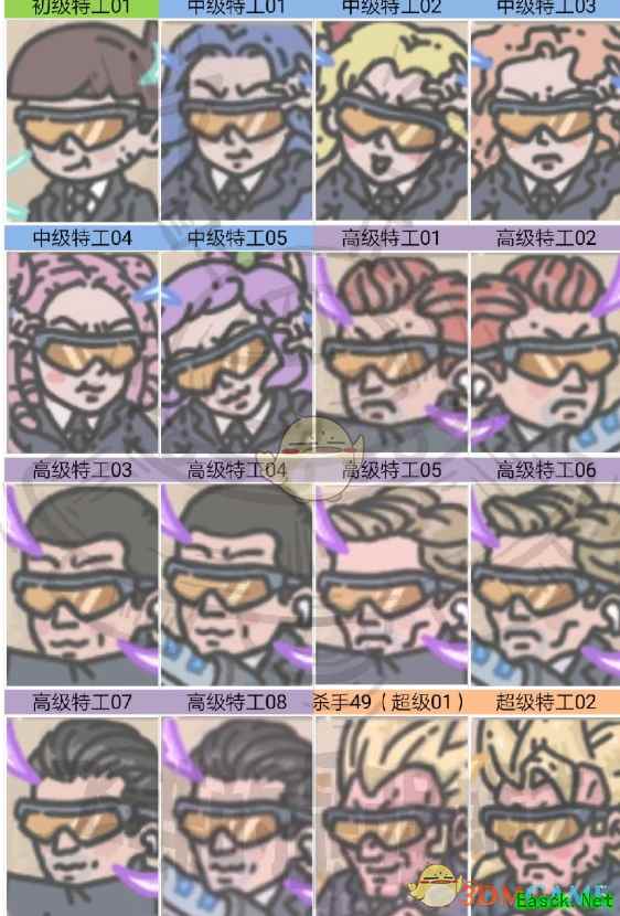 特工执照01为截杀杀手49号掉落,临时特工执照为打败已拥有其执照的特工概率掉落。 至于特工等级,目前已知的是赛亚人是S级,奥特曼A级,女B级,柯南C级。 具体来说,嫌疑人的奖励达到10万/1万/1千/100黑蝌蚪分别对应S/A/B/C。 目前来看的话,估计越高等级的特工有着更高的抓捕成功率,而嫌疑人等级越高可能越不好抓。 以上就是本期关于《最强蜗牛》特工一览的全部内容了,要想获取更多游戏资讯请点击关注手游网。 |