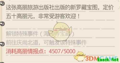 首先特殊时间就是类似于上图的三个事件,都是通过探索地图随机触发的,解锁特殊事件需要消耗对应地图的情报点。其实具体的触发局域也会有提示,比如下图海印寺宝藏特殊情报,就是前往庆尚北道触发的。