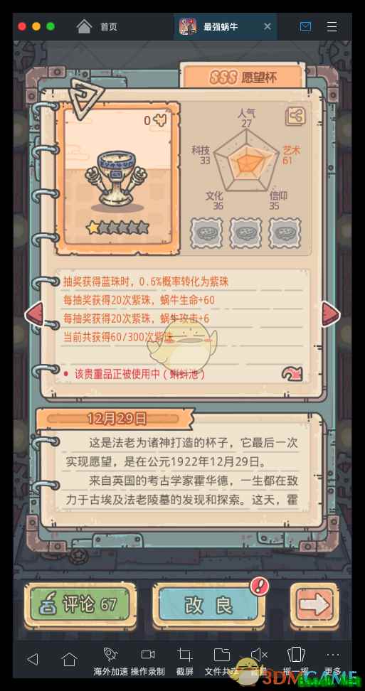 《最强蜗牛》抽奖券使用推荐你原来抽到的道具中包含一个紫色或者橙色道具以下的品质,刚好触发了保底,它就会变成你触发的相同品质。