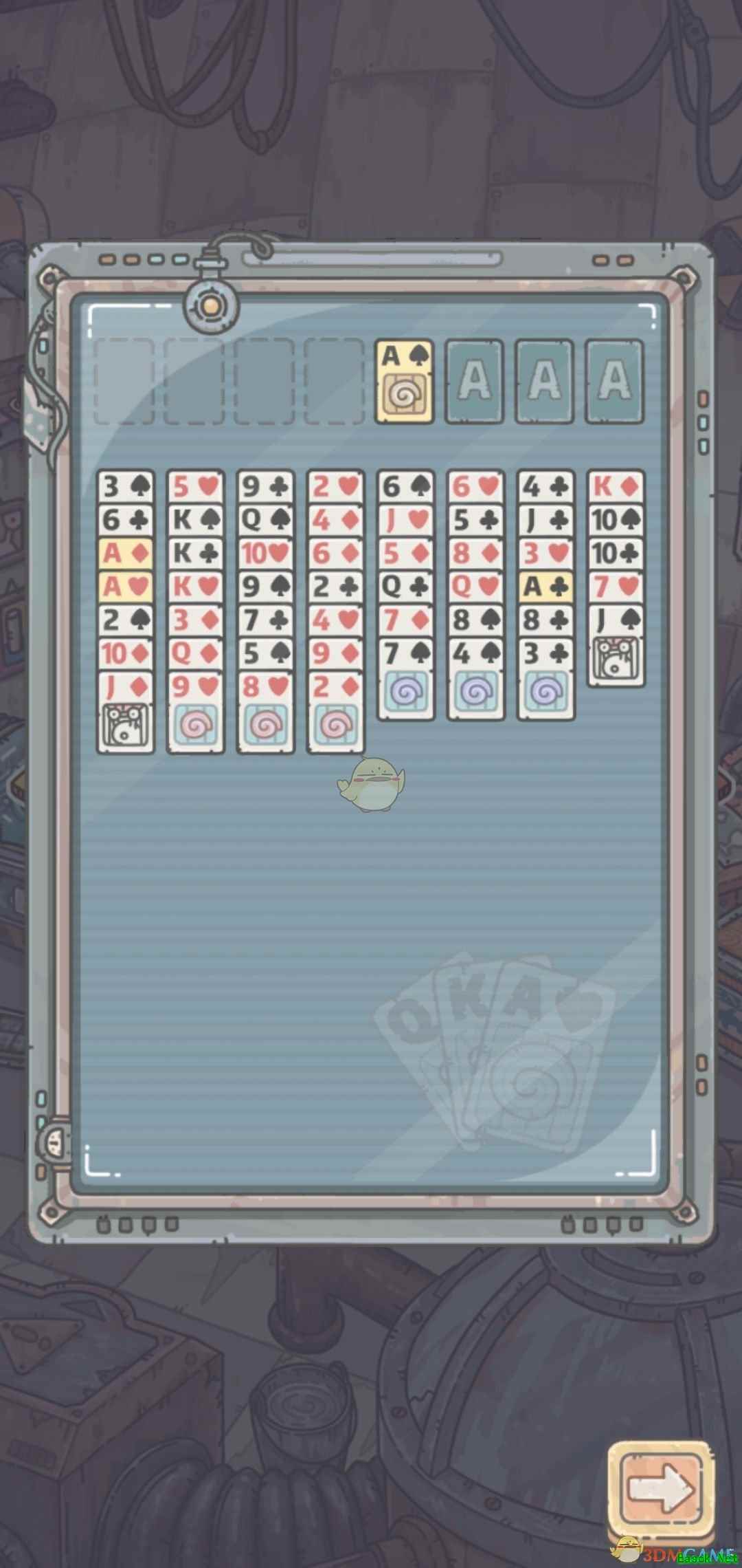 《最强蜗牛》空当接龙小游戏玩法具体玩法: 由k到A排序,红黑交替,玩家需要将打乱的牌排好,右上角四个位置是由a到k四种花色, 可以进入的牌会自动进入不可移动,左边四个位置是活动位置可以放牌但只能一张。 如图因为最右边的黑A在第一所以自动被收到右上角。 接着看中间的方块2可以移到右边黑3处,黑七可以移到红八。