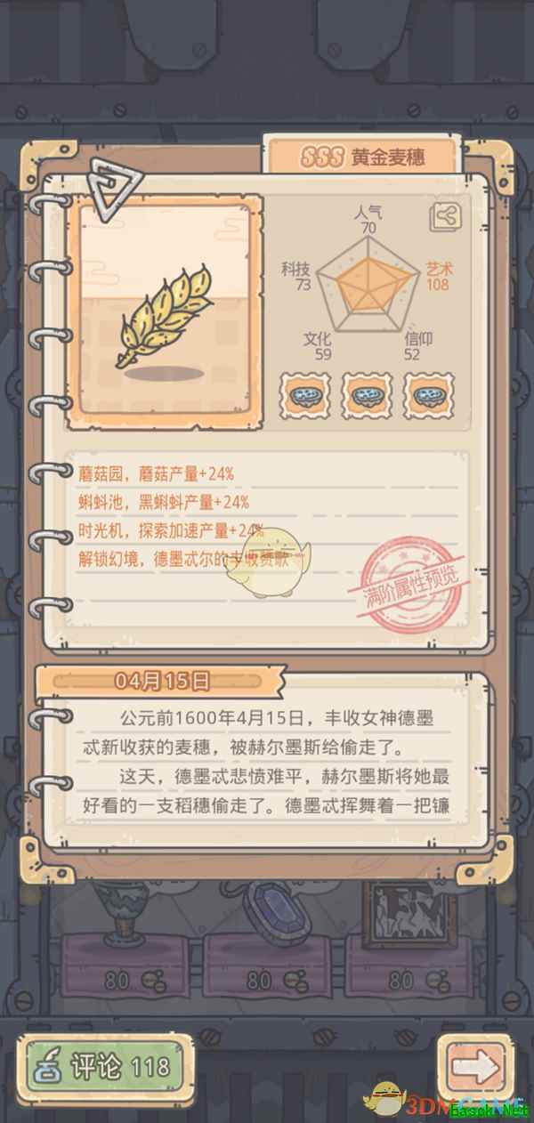 橙色贵重品推荐大全麦哲伦的望远镜 这个望远镜由于一开始只要30R就可以购买到,很多小伙伴觉得这个贵重品肯定一般般 但是这个贵重品的三项属性中,有一项属性很不错 探索移动速度+2.4%,探索速度决定挂图资源的收益率 同时将其放置在罗盘中,高级属性可以触发探索移动速度+9%9%的探索移动速度,这个数据很强悍 黄金麦穗 黄金麦穗,三项属性中,亮点在于其中一项