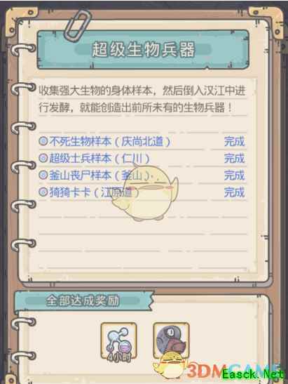 需完成庆尚北道,仁川,釜山,江原道后获得奖励猗猗卡卡,研究加速4小时