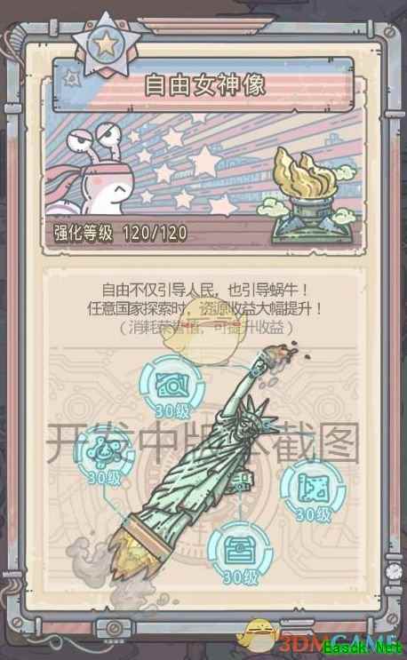 《最强蜗牛》米国自由女神像特性介绍目前米国特性仍处于官方测试中,但是从爆料来看属性还是十分给力的。 米国特性:自由女神像,刷资源必备! 好消息!已走出开荒期并步入米国的蜗爷们! 米国特性能在任意国家探索中提升资源收益,一定程度上缓解相关资源需求压力, 而具体提升哪些哪类资源,看图!细品! 真可谓是万金油!