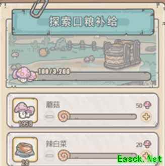 在探索口粮补给界面中,找到梨这个食物,然后点击【补充】按钮,就能将其使用掉,使用200个就是探索一次地图的事情。