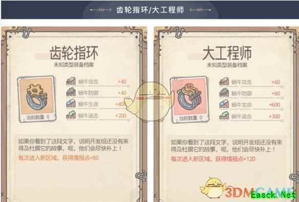 下一趟探索,出来的是十来颗龙珠还是七八根檀香(该醒醒了!)总的来说,百万吨支撑的性价比非常高,超级建议合成! 最终探索移动速度+9.6%,非常豪华的数据! 2、齿轮指环: 前期如果能拿到这个,自然是最好的,中后期乏力,升级后如图