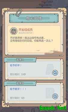 访客好评差评选择攻略总共有2个访客让大家给好评和差评的。 第一个:开发组成员,只需要一直给差评。 这个建议大家选择差评,原因很简单,就是你选择好评才给你几千个黑蝌蚪,不是很值钱。 而如果你选择差评,他会一直让你选择,你一直点击差评,点击大概40多次之后。