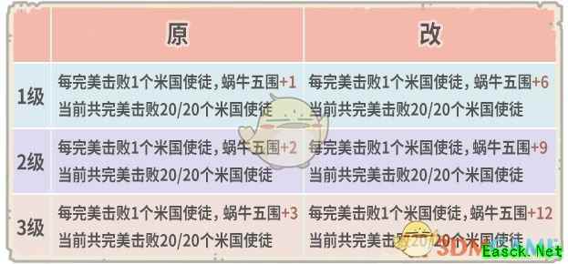【调整与优化】 1、近期接收到不少细心蜗爷们的反馈:米国情报树中【异能掠夺】效果不尽如人意!与光头策划们一番友好的攀谈后,进行以下调整: