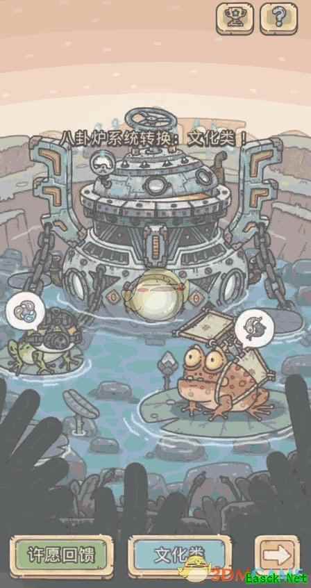 4、新增一个综合实力回馈礼包 当蜗爷们的综合实力达到150万后,便可前去购买该礼包; 礼包奖励:白蝌蚪×3000、抽奖券×30、七彩炫菇大餐×1 5、开放神奇蘑菇合成功能 通过购买综合实力特惠礼包,获得“七彩炫菇大餐”道具,并将其投喂给八卦炉旁的小青蛙后,便可开启该功能。