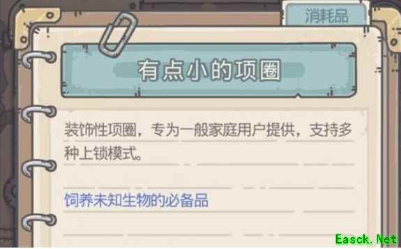 有点小的项圈获取攻略有点小的项圈获得方法介绍: 1、玩家直接去贩卖机用30000黑蝌蚪购买就行,但是购买的次数是限制的。 2、每位玩家只能购买一次,反正入手方法很简单,多积攒一点黑蝌蚪就行了。 有点小的项圈作用介绍: 1、可以在宠物小屋中使用,之后可以孵化出宠物猪。 2、有点小的项圈和有点小的食盆搭配出的效果是非常好的,在配合上异界之种。