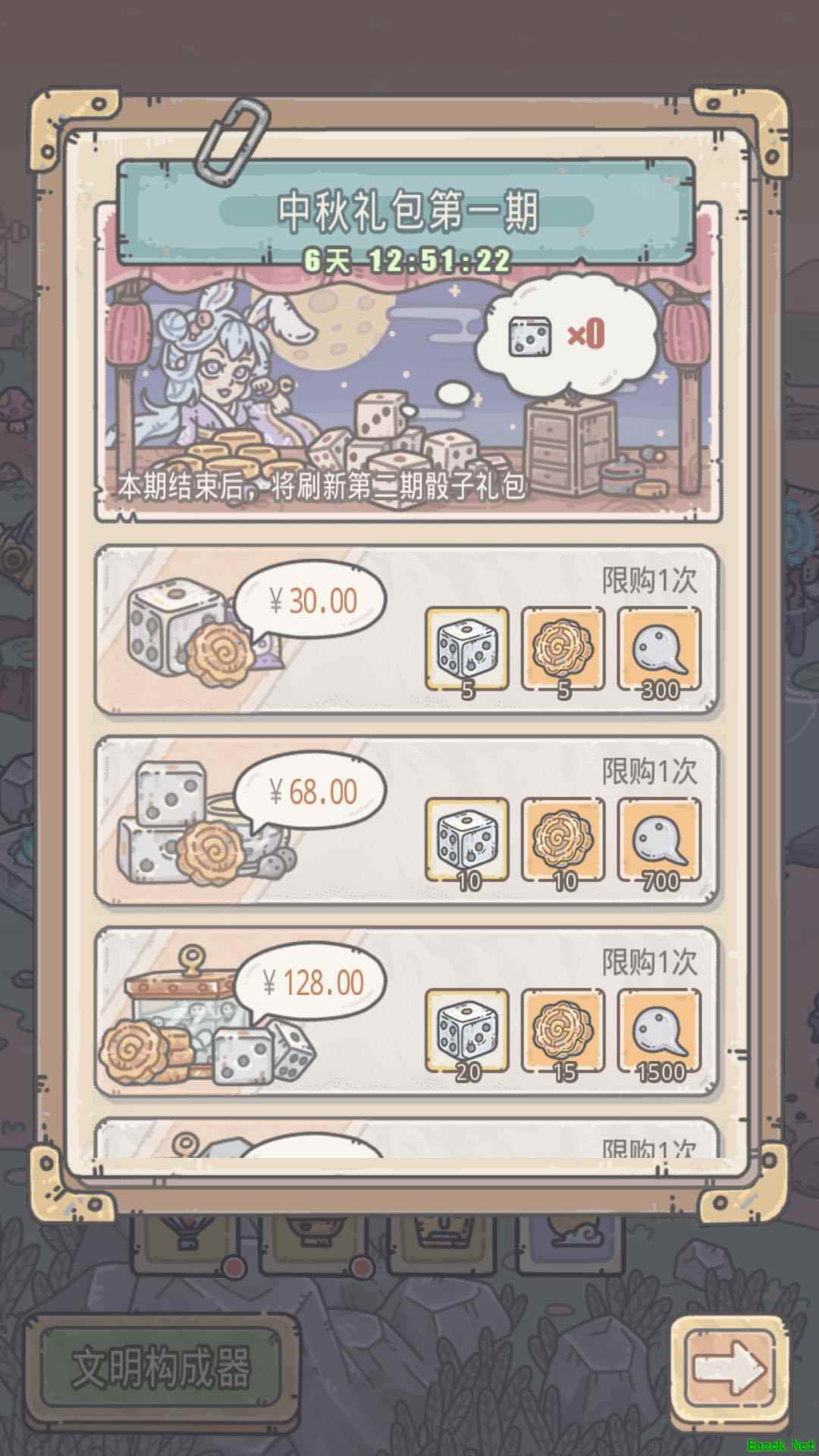 点击猴子尾巴兑换即可进入中秋秘宝兑换。 消耗不同数量的猴子尾巴即可兑换活动限定奖励。 三、购买骰子礼包