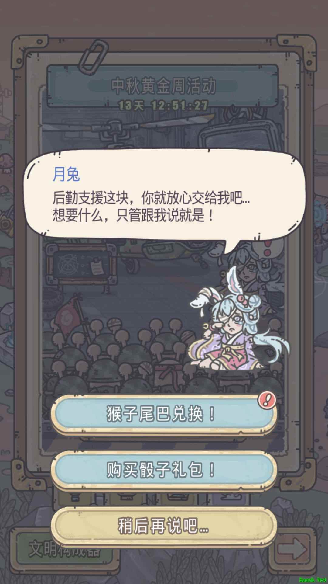 我们在活动界面点击玉兔即可进行互动。 目前只能猴子尾巴兑换和购买骰子礼包。 二、猴子尾巴兑换