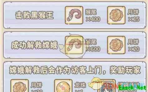 二、触发方法 1、在月球突袭战中达到20次终点即可触发。 2、此事件为唯一事件,必定触发且只能触发一次。 三、用处介绍 1、击败黑猴王即可解救嫦娥,之后嫦娥会作为家园访客拜访。 2、并且击败和解救嫦娥都能获得中秋活动道具奖励。