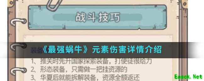在最强蜗牛手游中元素伤害具体怎么样呢?游戏中的元素伤害不是一个固定值是变动化的,与之相关连的就是面板的攻击力和地方的元素抗性,那么想知道具体的元素伤害数据的就跟随小编一起来看看吧。