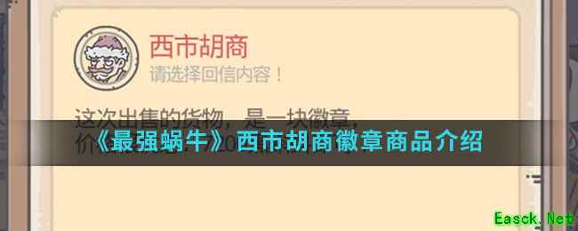 在最强蜗牛手游中西市胡商一块徽章是什么呢?有不少小伙伴在西市胡商会出售售价7200黑蝌蚪的一块徽章,但是这个徽章值这么多吗、具体是什么呢?想知道西市胡商徽章商品介绍的就跟随小编一起来看看吧。