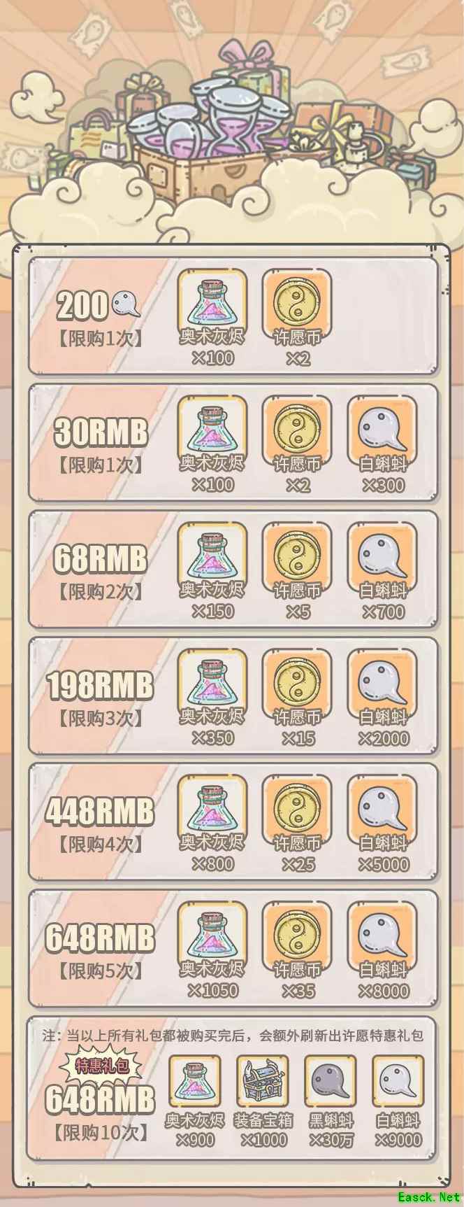 10月23日许愿周活动攻略一、更新时间 本周五(10月23日)凌晨五点,部分服务器活动将更新为大祈愿之阵。 二、贩售机福利 在此活动期间,贩售机会出现福利礼包,每日五点刷新,售价1白蝌蚪。