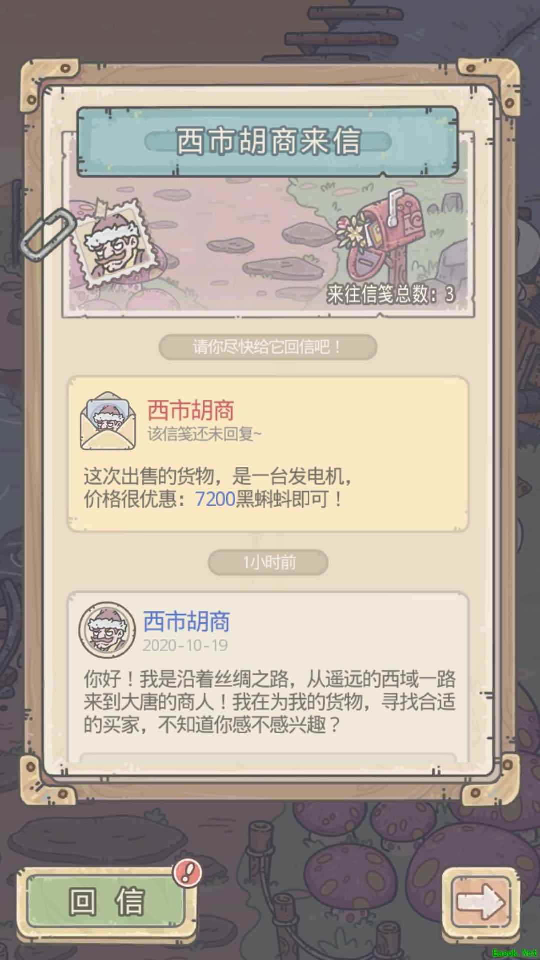 二、西市胡商 1、活动期间(10月16日-11月5日),每天会有西市胡商来访,玩家可在家园信箱中查看胡商来信。 2、回复胡商信件后,胡商会向蜗爷们兜售一种商品,各位蜗爷可自行选择是否购买。 3、西市胡商的商品,包含贵重品和多种珍稀资源。具体内容,请蜗爷们在游戏内体验。 4、早上5:00后登录游戏,即可触发西市胡商来访。 三、注意事项 同意或拒绝上一次西市胡商的兜售后,才能触发当日西市胡商的来信。 以上就是小编整理的最强蜗牛西市胡商发电机介绍,想知道更多相关资讯攻略的请关注手游网。 |