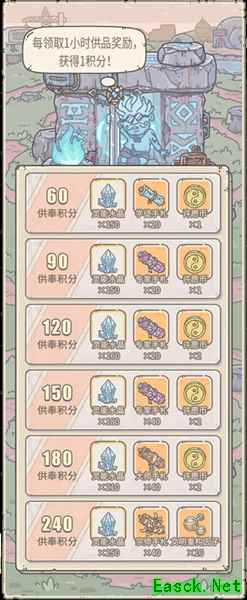 【活动详情】 活动期间,每次领取供奉奖励 根据祭品原始的供奉时间 获得活动积分(1小时=1积分) 累积对应的活动积分,可获得以上奖励 以上就是小编整理的关于《最强蜗牛》10月神坛秘仪活动内容介绍的全部内容,想获得更多相关游戏攻略可以关注手游网。 |