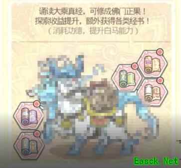 天竺国家特性介绍: 一、天竺国家特性 天竺国家特性—白马 诵读大乘真经,可修成佛正果! 探索收益提升,额外获得各类经书! (消耗功德,提升白马能力)