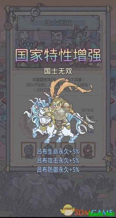 《最强蜗牛》华夏国家特性增加攻略增加方法 先解锁天竺国家特性驮经白马。 然后就可以去国家特性界面点击华夏国家特性国士无双。 吕布就会骑上白马并且强化百分百属性。