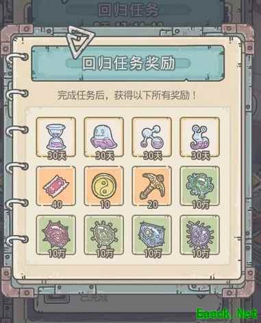2.回归奖励 回归的玩家,可开启回归活跃任务,完成任务后可领取大量资源奖励。