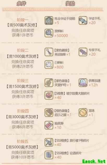 1、牛气满足一定条件后,可在牛气送福中兑换奖励 2、通过领取牛气送福奖励,可以获得限定橙色SSS贵重品五牛图 奖励详情: 牛气达到400 蓝色招募令x1、供奉加速x3小时、抽奖券x3 牛气达到800 蓝色招募令x1、供奉加速x3小时、抽奖券x3 牛气达到1200 紫色招募令x1、许愿币x2、黑蝌料x50000、 牛气达到1600 蓝色招募令x1、供奉加速x3小时、抽奖券x3 牛气达到2100 蓝色招募令x1、供奉加速x3小时、抽奖券x3 牛气达到2600 五牛图碎片*40(SSS阶橙贵)、装备宝箱x200、炼金大师手提箱x3 牛气达到3100 蓝色招募令x1、供奉加速x4小时、抽奖券x4 牛气达到3600 蓝色招募令x1、供奉加速x4小时、抽奖券x4 牛气达到4100 橙色招募令x1、许愿币x4、黑蝌科料*80000 牛气达到4600 蓝色招募令x1、供奉加速x4小时、抽奖券x4 牛气达到5100 蓝色招募令x1、供奉加速x4小时、抽奖券x4 牛气达到5600 五牛图碎片x40(SSS阶橙贵)、神龙宝箱x200、炼金大师手提箱x3 牛气达到6100 蓝色招募令x1、供奉加速x5小时、抽奖券x5 牛气达到6600 紫色招募令x1、供奉加速x5小时、抽奖券x5 牛气达到7200 启示之眼x1 (橙色装备)、许愿币x6、白蝌蚪x500 牛气达到7700 蓝色招募令x1、供奉加速x5小时、抽奖券x5 牛气达到8200 紫色招募令x1、供奉加速x5小时、抽奖券x5 牛气达到8700 五牛图碎片x40 (SSS阶橙贵)、神赐混沌宝箱*300、炼金大师手提箱x5 牛气达到9200 紫色招募令x1、供奉加速x6小时、抽奖券x6 牛气达到9900 紫色招募令x1、供奉加速x6小时、抽奖券x6 牛气达到10600 五牛图碎片x40 (SSS阶橙贵)、神赐秩序宝箱x300、炼金大师手提箱x5 牛气达到11300 橙色招募令x1、供奉加速x6小时、抽奖券x6 牛气达到12000 梅檀x1、供奉加速x6小时、抽奖券x6 牛气达到12900 五牛图碎片x40 (SSS阶橙贵)、神赐中立宝箱x300、炼金大师手提箱x5 牛气达到13800 梅檀x1、供奉加速x8小时、抽奖券x8 牛气达到14700 梅檀x1、供奉加速x8小时、抽奖券x8 牛气达到15750 五牛图碎片x40(SSS阶橙贵)、限定宠物屋装饰-咚咚咚! 以上就是小编给大家带来的《最强蜗牛》牛气送福活动介绍,更多手游攻略请关注手游网! |