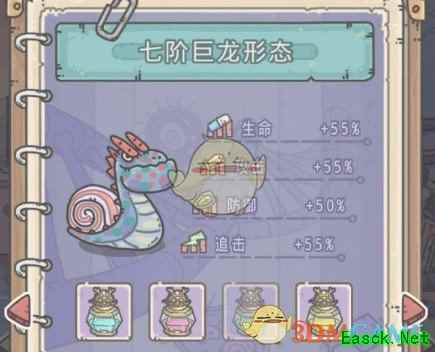 小结 一般来说游戏前期比较常用的是恶魔形态,因为攻防兼具属性均衡,爆发输出也很高。 等到了后期巨龙形态加成是最高的,对于四个属性都有全方面的提升,并且还会额外提升探索获取神龙宝箱的概率,35%的概率还是很可观的,后期建议使用巨龙形态。 以上就是本期关于《最强蜗牛》基因形态解锁条件一览的全部内容了,要想获取更多游戏资讯请点击关注手游网。 |