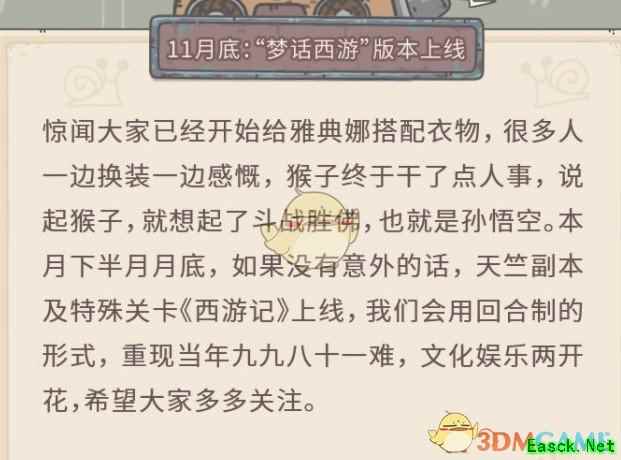 以上就是小编整理的最强蜗牛11月后半月版本更新内容介绍,想知道更多相关资讯攻略的请关注手游网。 |