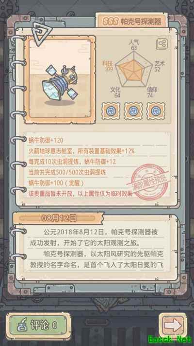 《最强蜗牛》帕克号探测器属性介绍